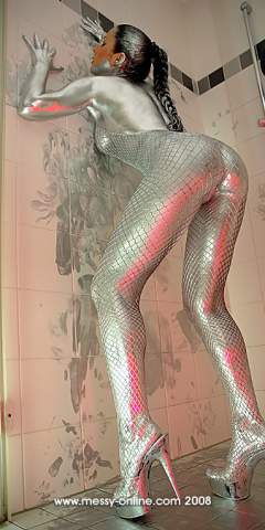 Ninadunklin had her elegant formal attire painted with a big, sloppy paintbrush by courier